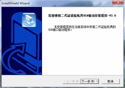 1、自動安裝時建議計算機(jī)上不連接機(jī)具,直接安裝驅(qū)動,安裝成功后,連接機(jī)具即可使用。若安裝時計算機(jī)上連接了機(jī)具,則安裝成功后,機(jī)具需要斷電,重新上電后才能正常工作。2、點(diǎn)擊二代證讀驗機(jī)具USB驅(qū)動.exe,出現(xiàn)圖1所示界面,點(diǎn)擊“下一步”。