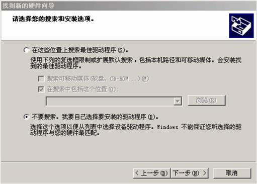 4、選中圖10所示對話框的“不要搜索……”,點(diǎn)擊“下一步”按鈕;