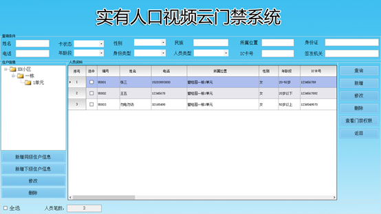 對小區(qū)不同人員類型進(jìn)行在線實時統(tǒng)計和管理
