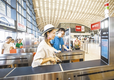 第一步,當(dāng)乘客進(jìn)入通道,站在這個(gè)終端面前時(shí),會(huì)看到地上有個(gè)黃色雙腳丫參考標(biāo)識(shí),乘客踩上去站立。第二步,將車(chē)票和身份證取出,車(chē)票正面朝上,身份證則放在車(chē)票下面,將疊加在一起的車(chē)票和身份證放在掃描區(qū)掃描。第三步,乘客抬頭看著攝像頭,完成刷臉。如果車(chē)票、身份證、人臉,三信息無(wú)誤,“嘀”的一聲,進(jìn)站通道的閘機(jī)便自動(dòng)打開(kāi)。如果操作得快,3秒即可,操作稍慢點(diǎn),6秒左右即可過(guò)關(guān)。