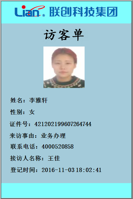 7、打印訪客單或發(fā)放IC卡,身份證,二維碼;登記數(shù)據(jù)保存到數(shù)據(jù)庫;