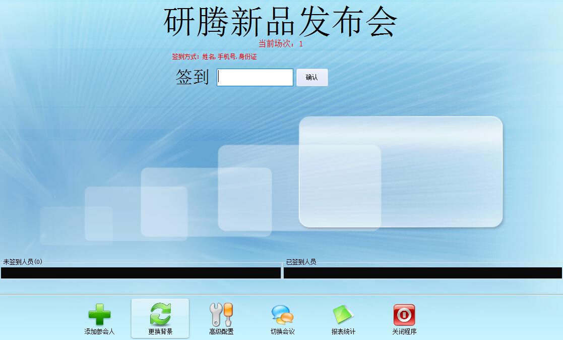 研騰會議簽到管理系統(tǒng)是一款智能化會議管理系統(tǒng),軟件分為簽到端和會議管理端,可用于大型會議,展會,支持指紋簽到,二維簽到,身份證簽到,IC卡簽到,旨在為會議、展會、活動等出現(xiàn)的問題提供一種解決方案,比如人員管理亂,通知下發(fā)不全面,資料信息不全面,參會不及時,沒有憑證,等等各種問題。