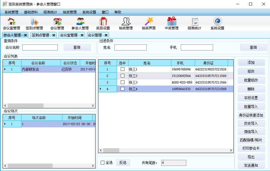 2、 參會人員信息支持表格批量導(dǎo)入及身份證閱讀器直接添加。