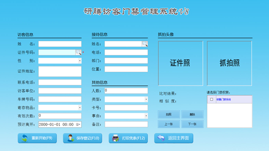 研騰訪客門禁系統(tǒng)是一款基于訪客預約登記、內(nèi)部員工及訪客出入智能化管理系統(tǒng)。系統(tǒng)由訪客門禁管理軟件、訪客證件讀取設備、身份證+IC卡二合一門禁系統(tǒng)組成。訪客可實現(xiàn)來訪登記、授權開門,內(nèi)部人員可實現(xiàn)刷員工卡進入門禁管理范圍。系統(tǒng)支持讀取完整身份證信息(姓名、性別、年齡、頭像等),%100鑒別身份證真假,同時門禁控制器可存儲50萬權限,3萬完整身份證信息。將來訪登記與門禁管理完美結合,開門與訪客登記一次性完成,自主設置訪客出入?yún)^(qū)域,訪問時間,發(fā)放門禁卡等。大大提高保安人員工作效率、為辦公大樓等場所提供更加安全有序的環(huán)境。