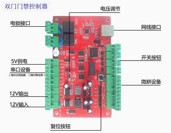 雙門(mén)雙向:控制板可以同時(shí)連接兩個(gè)身份證閱讀器(或其他身份證讀取設(shè)備),四個(gè)開(kāi)門(mén)按鈕同時(shí)控制2個(gè)門(mén)的出入。